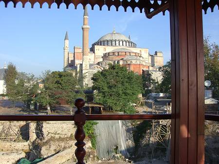 Blick auf die Rückseite der Hagia Sophia vom Restaurant